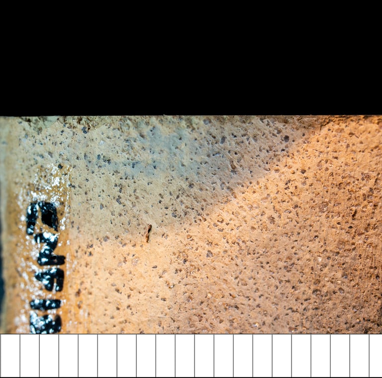 TS description (NDR MCW3) (P. Quinn): Unimodal grain size distribution composed of well-sorted, sub-rounded to sub-angular medium-fine sand sized quartz and polycrystalline quartz, some chert, amphibole, opaques and rare zircon, plagioclase and untwinned feldspar. The clay matrix is clean, mottled and relatively iron-poor. Conspicuous lumps of un-hydrated and unmixed base clay occur in the sample. Porosity is low and composed of thin parallel-sided meso-elongate drying voids. Firing took place in an oxidising atmosphere and the significant optical activity and the green colour of the amphibole indicates that the temperature was not above 750°C.