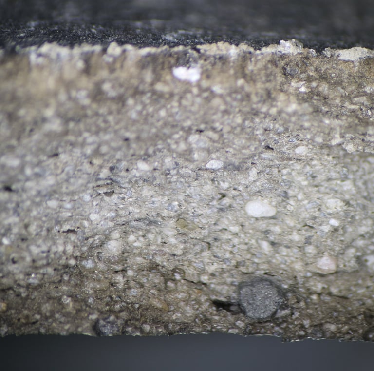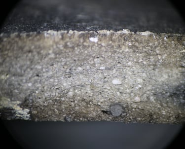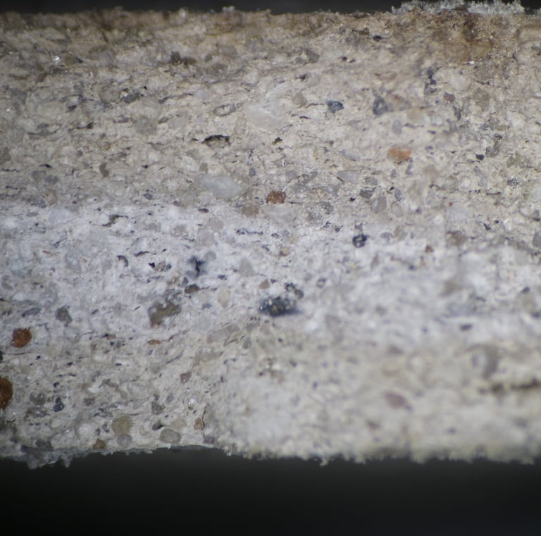 Microscope sample. Abundant silt-sized quartz sand (mainly white and grey), sparse fine sub-rounded sand, rare coarser rounded quartz (white, brown), sparse to moderate fine-medium ferrous oxide, rare clay pellets (sometimes large). Usually grey, sometimes with buff surfaces and margins.