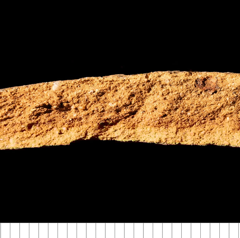General code for this fabric type across East Anglia, many sources now known, but not always possible to distinguish between them. Generally very fine to medium sandy, occasional inclusions of clay pellets or ferrous oxide, moderate to common mica, and rare other local inclusions (flint, chalk etc.). See Jennings (1981) for more detail.